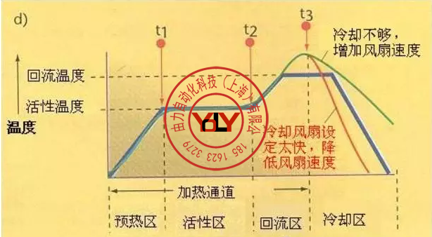 理想的冷却区曲线应该是和回流区曲线成镜像关系。越是靠近这种镜像关系,焊点达到固态的结构越紧密,得到焊接点的质量越高,结合完整性越好。