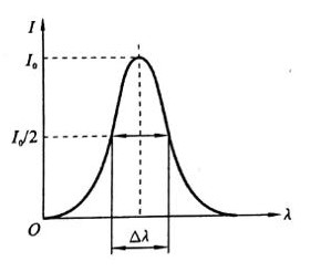 波长(或频率)的变动范围称为谱线宽度,用△λ表示,如图所示。通常把光源的谱线宽度作为光束单色性的定量指标,谱线宽度越小,光源的单色性越好。
