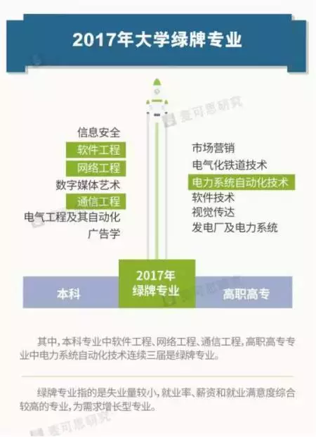 以上,就是与智能制造相关的专业,苏州微缔MES,祝各位考生都能选择适合自己的学校、专业。另附麦可思研究院公布的2017年大学绿牌专业,以供考生参考。